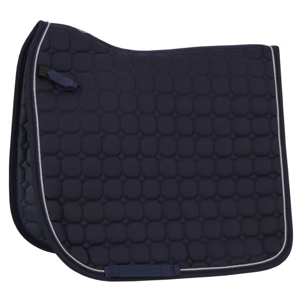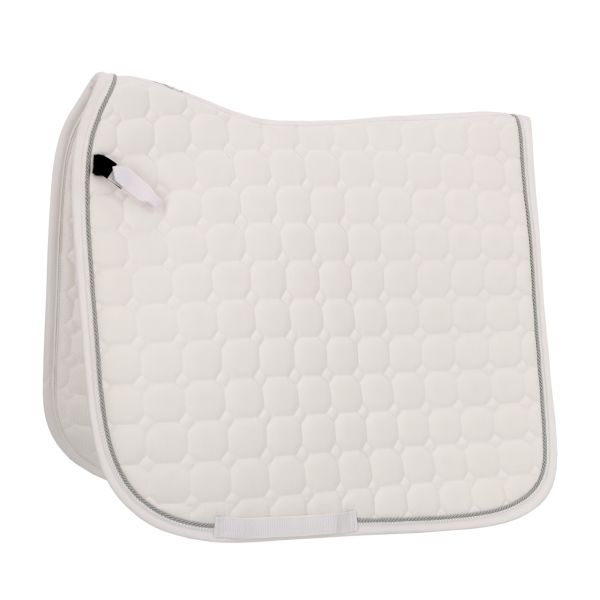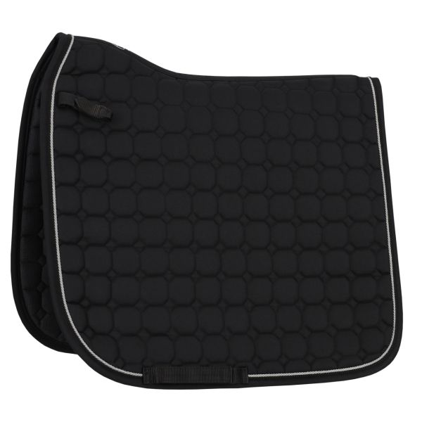 Die stilvolle Schabracke Firenze hat einen anatomisch geformten Rücken mit optimaler Passform. Das atmungsaktive Netzmaterial auf der Innenseite gewährleistet eine gute Schweißabsorption. Mit zwei Zierkordeln und Q-Pin auf der linken Seite. Die Gurtschlaufen und kurzen Sattelschlaufen mit Klettverschluss halten die Schabracke zuverlässig an Ort und Stelle.