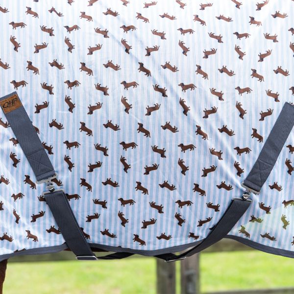 Die Fliegendecke Pferd Stable Buddy schützt Ihr Pferd an warmen Tagen zuverlässig vor Insekten. Die bequeme Passform, doppelte Schnallenverschlüsse, Laufschlitze und der Schweiflatz sorgen für maximale Bewegungsfreiheit, während Nyloneinsatz und Cordsamt-Widerristschutz Scheuerstellen verhindern.