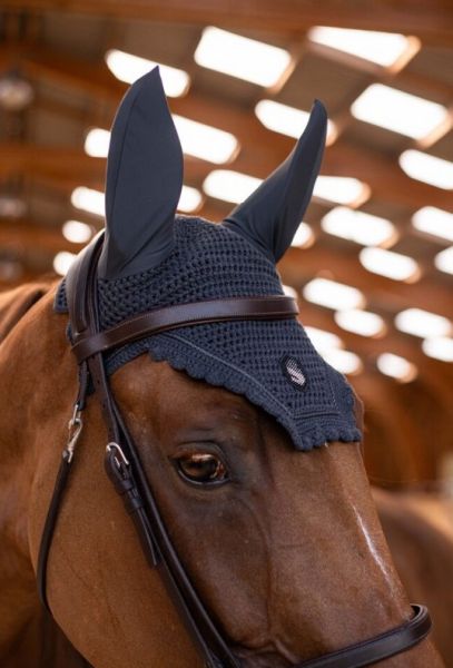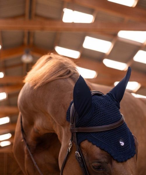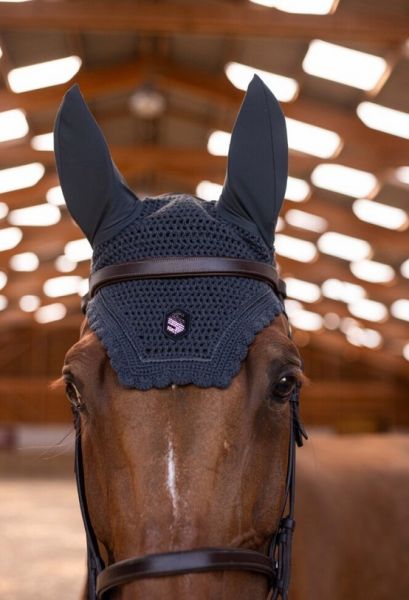 Die Fliegenhaube wurden im gleichen Stil wie die technische Ausrüstung von Samshield entworfen und vereinen Schutz, Komfort und dezente Eleganz. Ihr anatomisches Design gewährleistet die perfekte Kompatibilität mit modernen Kopfteilen und bietet gleichzeitig optimalen Halt im Wettkampf. Als wahres Schmuckstück der Reitkunst zeichnen sie sich durch ihre sorgfältige Verarbeitung und das mit Swarovski-Kristallen verzierte Samshield-Logo auf der Vorderseite aus.