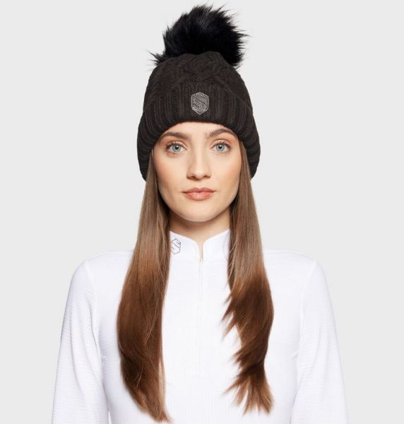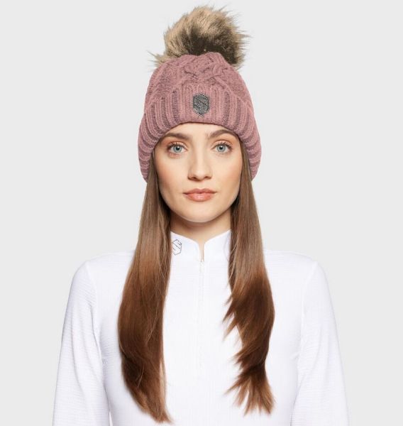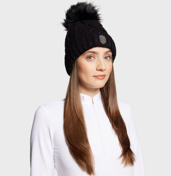 Nora Crystal Intarsia Damen-Bommelmütze. Für Reiterinnen, die es mit zeitlosem, kristallverziertem Stil warm haben möchten. Ideal zum Reiten und für den Alltag.
