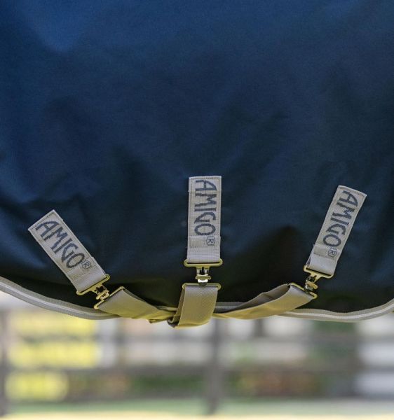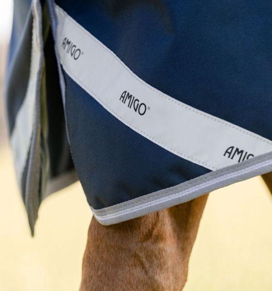 Die leicht wärmende Amigo® 1200D Weidedecke 50g ist eine vielseitige Weidedecke mit hohem Tragekomfort. Die wasserdichte und atmungsaktive Decke hat einen Außenstoff aus robustem 1200D-Polyester. Mit 50 Gramm Faserfüllung bietet sie das richtige Maß an Wärme bei wechselnden Wetterbedingungen. Das glanzgebende, antistatische und antibakterielle Polyesterfutter hilft dabei, das Fell gesund zu erhalten und reduziert Reibung sowie bakterielles Wachstum. Die Decke ist auf sicheren Sitz bei optimaler Bewegungsfreiheit ausgelegt mit einem V-Brustverschluss, doppelten Beinausschnitten für Mobilität und drei Kreuzgurten für eine anpassbare Passform. Sie ist mit dem Horseware®-Liner-System kompatibel für flexible Eindeckoptionen und kann mit einem abnehmbaren Amigo® Weidedecken-Halsteil (separat erhältlich) kombiniert werden. Beide Optionen sind mit praktischen Klettverschlusslaschen anzubringen. Weitere Merkmale sind ein abwaschbarer Schweifriemen, ein Schweiflatz für zusätzlichen Schutz und Reflektorstreifen für bessere Sichtbarkeit. Die Amigo® 1200D Weidedecke 50g ist eine verlässliche Wahl für den ganzjährigen Einsatz.