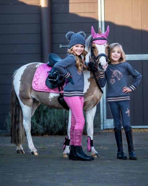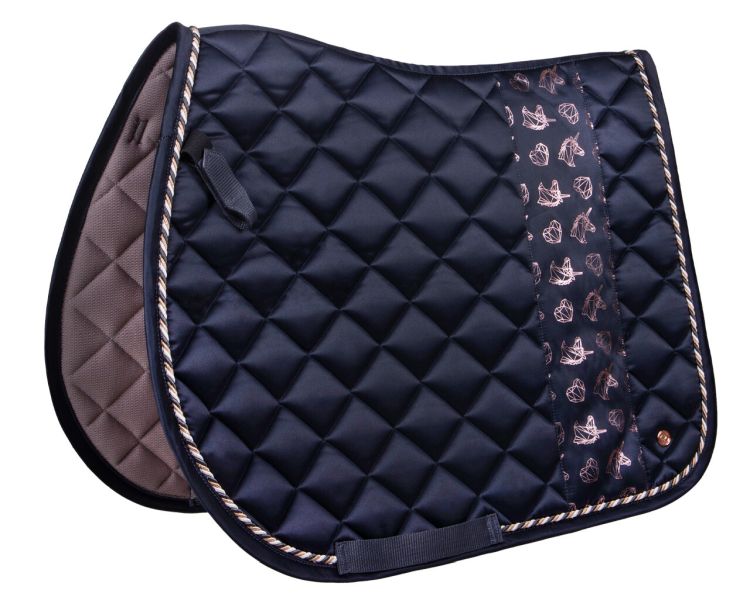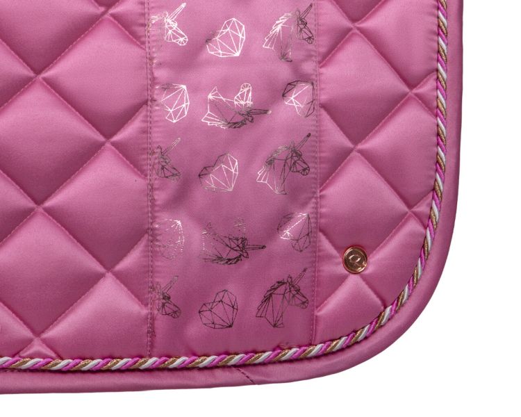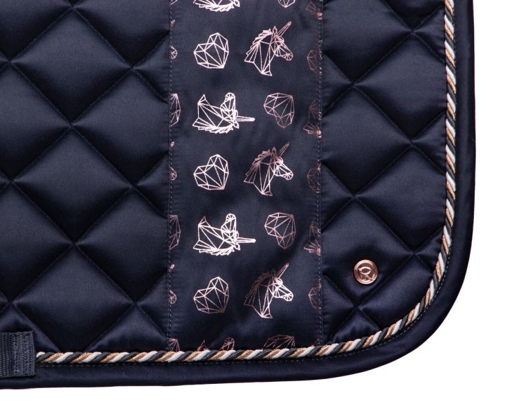 Niedliche Schabracke mit supersüßem goldenen Einhorndruck auf der Rückseite. Die Schabracke ist mit einer zweifarbigen Zierkordel entlang des Randes verziert. Ausgestattet mit Gurtschlaufen, die dafür sorgen, dass die Schabracke nicht verrutscht.