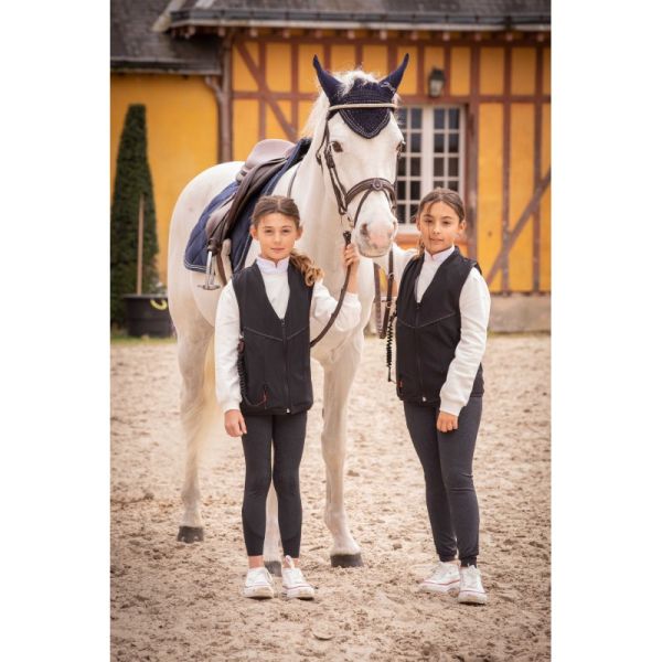 Die Airbag-Weste Airlight 2 Kinder von Pénélope by Freejump schützt junge Reiterinnen und Reiter bei einem Sturz vom Pferd.SCHUTZ:Die Airbag-Weste Airlight 2 von Pénélope bietet einen optimalen Schutz für Nacken, Rücken, Lendenwirbelsäule, Kreuzbein, Becken und Brustkorb. Sie verfügt außerdem über einen kontinuierlichen seitlichen Schutz, der eine Ausrichtung des Rumpfes gewährleistet. Im Nackenbereich sorgt ein Kragen für Stabilität der Wirbelsäule und der vitalen Bereiche. Erhältlich in zwei Größen, Child S und Child L, passt sie sich einer Vielzahl von Körperformen an. Mit dem Airbag Airlight ist das Tragen eines zertifizierten Reithelms unerlässlich, um den Reiter oder die Reiterin bestmöglich zu schützen. Die Neuheit dieses Modells liegt in der engeren Passform für einen besseren Schutz. Größenberatung: Die beiden Größen Child S und L sind für Kinder mit einem Gewicht zwischen 25 und 40 Kilogramm konzipiert. Die Rückenlänge variiert, um sich an eine Vielzahl von Körperformen anzupassen. Um die am besten geeignete Größe zu wählen, empfehlen wir, sich an der entsprechenden Größentabelle zu orientieren.STIL:Unsere Airbag-Weste Airlight 2 ist so konzipiert, dass sie eng anliegt, entweder alleine getragen oder über unseren New York Turnierjacken (hier erhältlich), den Paris Soft Air Turnierjacken (ab Dezember 2021 erhältlich) oder anderen zertifizierten "Freejump Airbag Technology kompatiblen Jacken"* (*Jacke kompatibel mit der Freejump Airbag-Technologie). Sie wird mit einem Reißverschluss auf der Vorderseite geschlossen und zwei V-förmige Nähte betonen das Produkt und verleihen ihm den unverwechselbaren Pénélope-Touch. Die Neuheit der Airlight 2 Weste liegt auch in ihrem neuen Stoff, der atmungsaktiver, leichter und weicher im Griff ist.KOMFORT:Aus elastischen und atmungsaktiven Materialien gefertigt, ist sie sehr leicht zu tragen und wird im Sattel schnell vergessen. Die Neuheit der Airlight 2 liegt auch in ihrer neuen, flexibleren und komfortableren Generatorunterstützung.ZERTIFIZIERUNG:Zertifiziert nach dem Standard AFNOR NF S72-800-2021 unter der Referenz CE FREEJUMP 1C.2.LEISTUNG:Die Aufblasgeschwindigkeit der Airbag-Weste Airlight 2 beträgt 98 ms, was die ultrarasche Zeit ist, um den erforderlichen Druck für einen optimalen Schutz zu erreichen. Der Gasgenerator dieses neuen Modells ist leichter, schneller und leiser. Er verfügt auch über ein neues patentiertes Kugelkordelband mit praktischem Halteclip (mit vereinfachter Rückstellung) und sein neues Sattelbefestigungssystem besteht aus einem leichteren Hochleistungstextil.GRÖSSENBERATUNG:Ihre Airbag-Weste Airlight 2 muss perfekt passen, weder zu groß noch zu klein sein. Zu eng anliegend könnte sie gefährlich sein beim Auslösen, zu groß könnte sie wirkungslos sein. Für dieses Modell sollte der Reiter oder die Reiterin mindestens 25 kg wiegen.PFLEGEHINWEIS:Diese Weste darf weder in der Maschine gewaschen noch chemisch gereinigt werden. Zur Pflege Ihrer Airlight können Sie sie von Hand mit einem milden Waschmittel waschen, ohne zu scheuern. Es ist absolut ausgeschlossen, sie in den Trockner zu geben oder zu bügeln. Sie darf nicht hohen Temperaturen ausgesetzt werden (z.B. auf einem Heizkörper, in der Nähe einer Flamme oder in einem geschlossenen Fahrzeug in direkter Sonneneinstrahlung). Sie dürfen die Weste weder falten noch aufrollen. Am besten lagern Sie sie an einem trockenen Ort auf einem Kleiderbügel, geschützt vor Feuchtigkeit.
