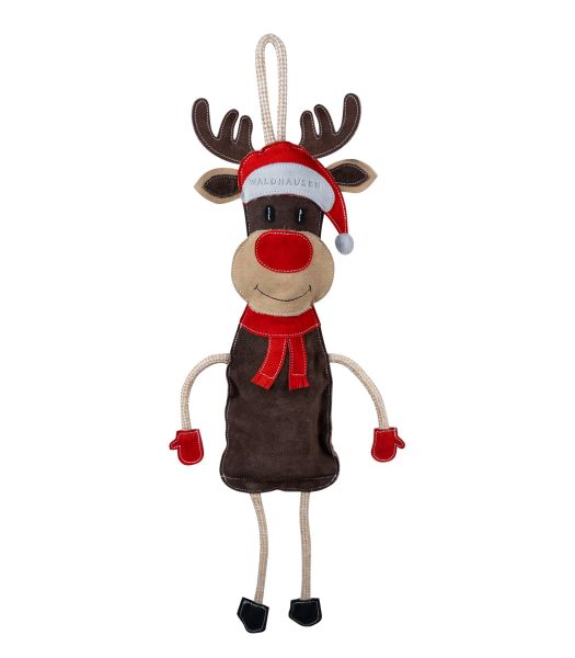 Das Pferdespielzeug Rentier Rudi von Waldhausen begeistert durch sein hübsches Design. Rentier Rudi hilft gegen Langeweile. Beim Drücken auf den Bauch ertönt ein knackendes Plastikgeräusch. Das Pferdespielzeug lässt sich leicht greifen und schwingen. Die Kunststoffflasche lässt sich durch einen Klettverschluss leicht herausnehmen oder austauschen. Mit dem Seil am Kopf kann das Spielzeug aufgehangen werden.