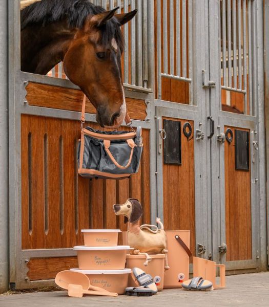 Mit seiner einfachen Aufhängemöglichkeit lässt sich Dackel Dieter überall im Stall befestigen und bietet so eine abwechslungsreiche Beschäftigungsmöglichkeit für Pferde aller Art.