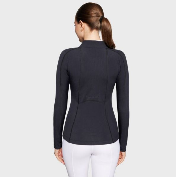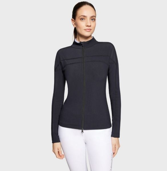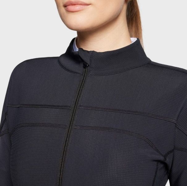 Evelya Damen-Langarm-Trainingsoberteil für den Reitsport. Ideal für Reiterinnen, die schlichten Stil und Funktionalität mit hohem Kragen und Reißverschluss suchen.